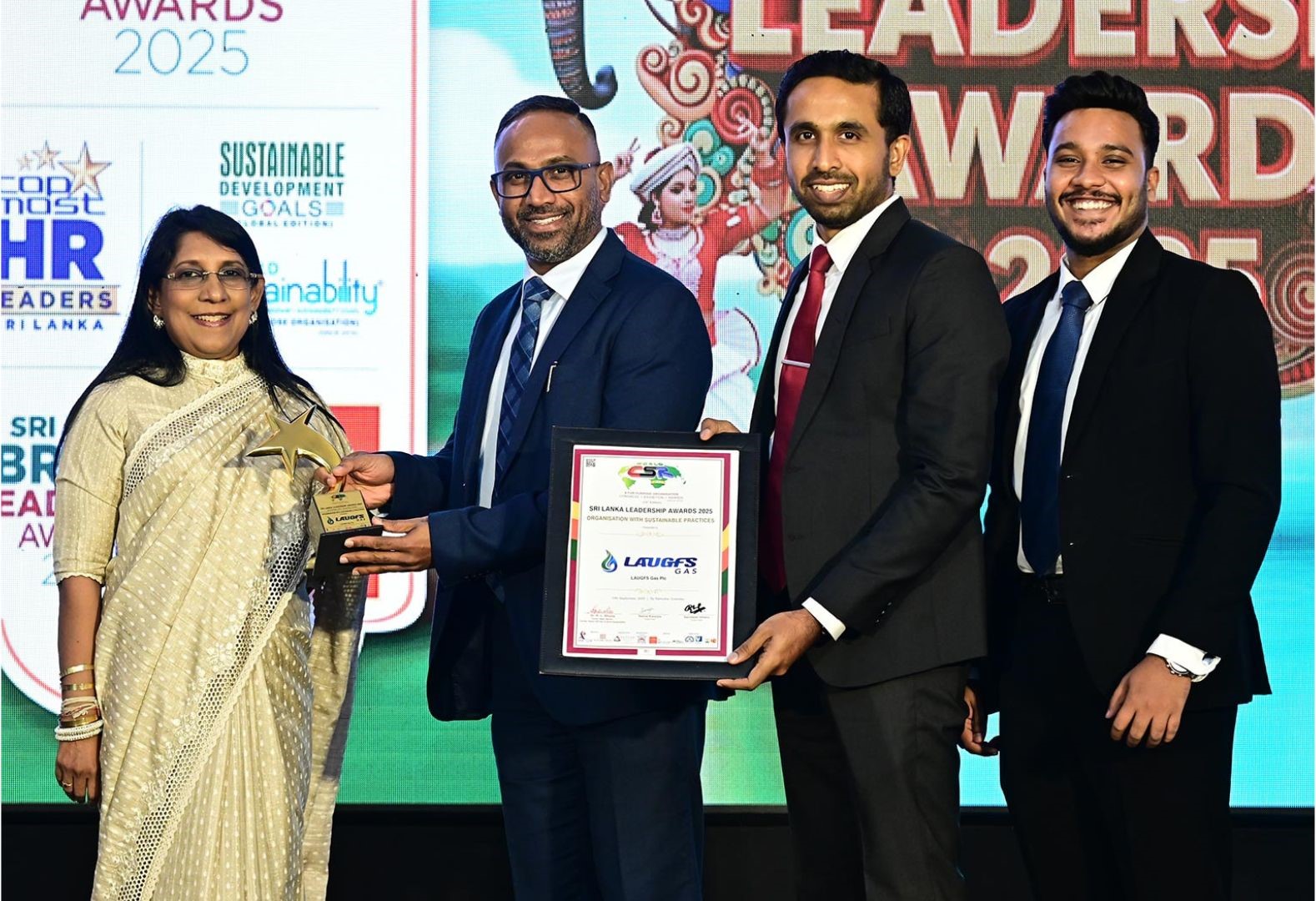 Organisation with Sustainable Practices – Sri Lanka Leadership Awards 2025 Honoured for commitment to responsible business practices, environmental stewardship, and sustainable growth, reinforcing LAUGFS Gas PLC’s role as a responsible industry leader.